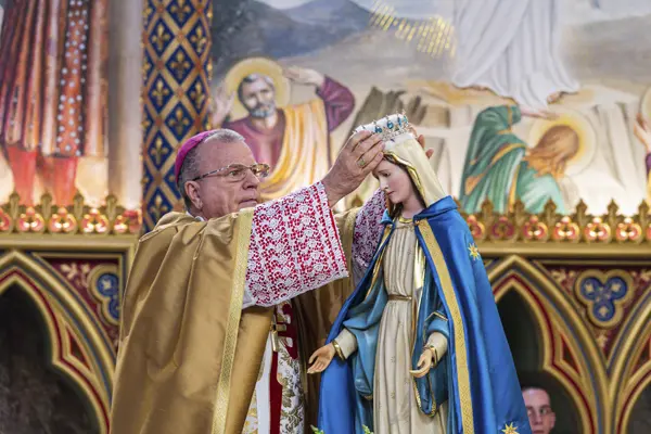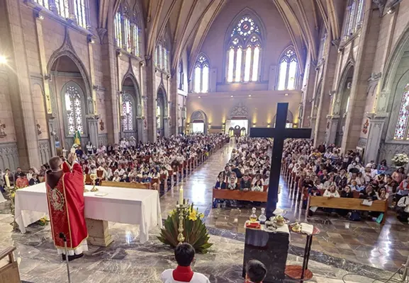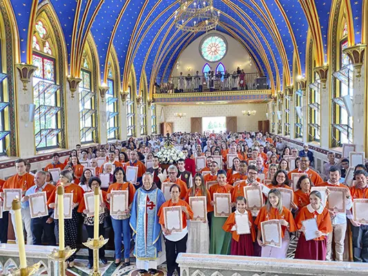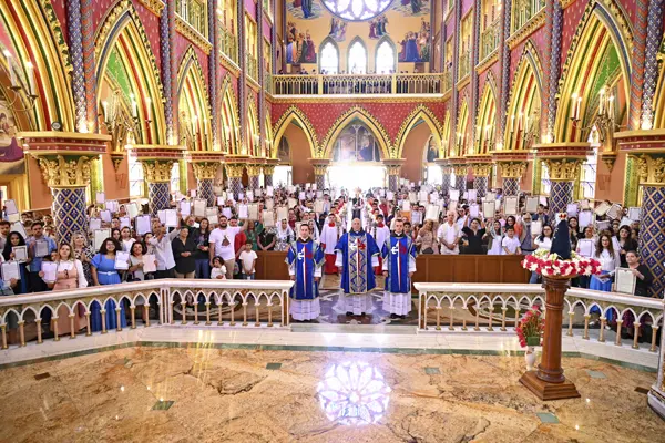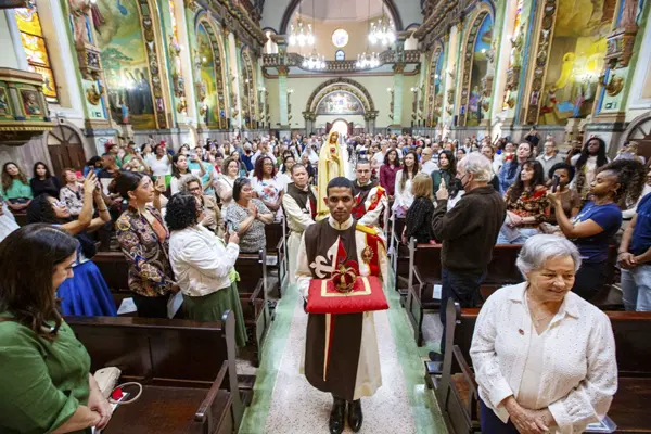 Caieiras (SP) – Por ocasião do décimo quinto aniversário de fundação da Paróquia Nossa Senhora das Graças, numerosos fiéis reuniram-se na Basílica de Nossa Senhora do Rosário, em Caieiras, para uma solene Celebração Eucarística, presidida por Dom Sérgio Aparecido Colombo, Bispo de Bragança Paulista, seguida de uma procissão com andores dos padroeiros das diversas igrejas, oratórios e capelas que compõem a paróquia.