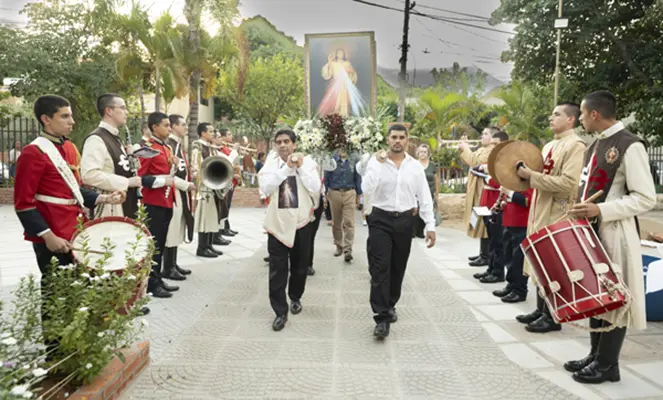Paraguai – No dia 27 de abril, os Arautos do Evangelho participaram da celebração do Domingo da Divina Misericórdia na Paróquia São João Maria Vianney, em Lambaré. O coral da instituição cantou durante a Missa e animou a procissão que, logo em seguida, percorreu as ruas adjacentes.