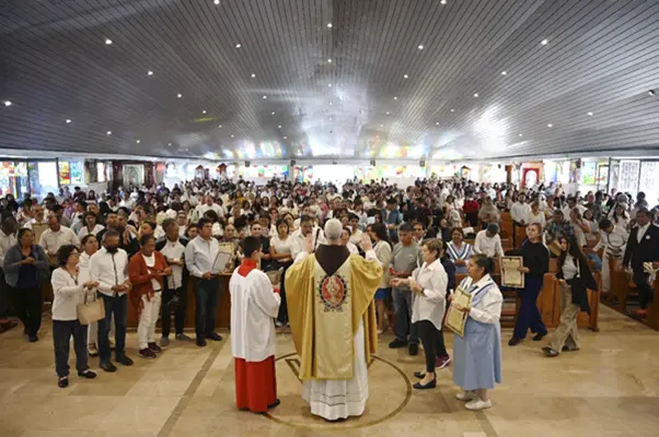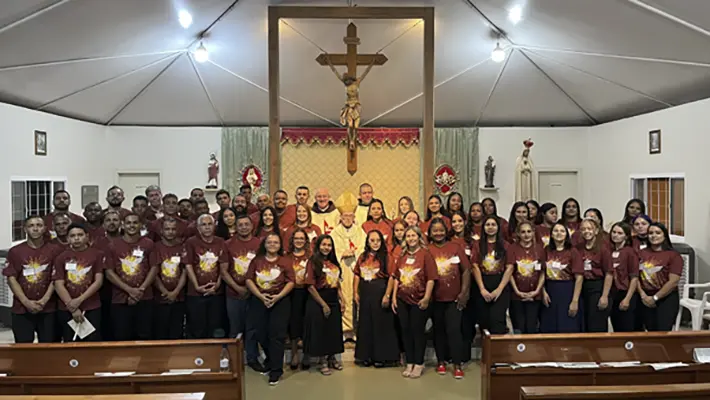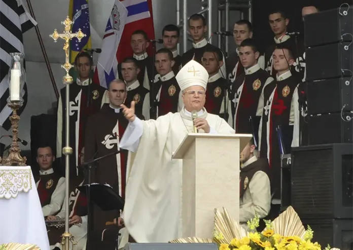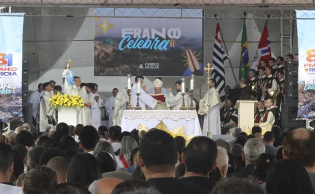 Franco da Rocha (SP) – Como parte das comemorações pelo 81º aniversário de Franco da Rocha, Dom Sérgio Aparecido Colombo, Bispo de Bragança Paulista, celebrou uma solene Eucaristia no Parque Benedito Bueno de Moraes, animada pelo coro dos seminaristas da Sociedade Clerical de Vida Apostólica Virgo Flos Carmeli. Na ocasião a prefeita da cidade, Da. Lorena Oliveira, coroou a imagem de Nossa Senhora.