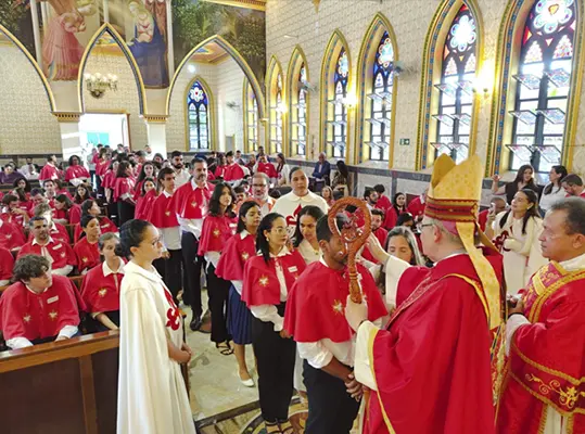 Sacramentos da iniciação cristã – Centenas de fiéis preparados pelos Arautos do Evangelho receberam em novembro os Sacramentos da iniciação cristã. Nas fotos, Batismo na Paróquia Divina Misericórdia em Santiago de Surco; Primeira Comunhão na catedral de Cuiabá, na Basílica Nossa Senhora do Rosário de Fátima em Cotia (SP), e na Igreja Nossa Senhora do Perpétuo Socorro em Juiz de Fora (MG); cerimônias de Crisma na Igreja de São Salvador em Lauro de Freitas (BA), presidida por Dom Marco Eugênio Galrão Leite de Almeida, Bispo Auxiliar de Salvador, na Paróquia Nossa Senhora da Divina Providência em Belo Horizonte, presidida por Dom Edmar José da Silva, Bispo Auxiliar Metropolitano, e na Paróquia Jesus Bom Pastor na Cidade Estrutural (DF), presidida por Dom Raymundo Damasceno Assis, Arcebispo Emérito de Aparecida.