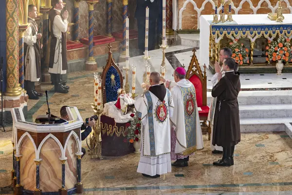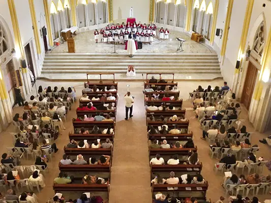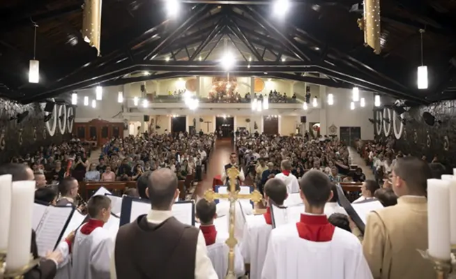 No dia 20 de dezembro de 2025, sessenta e nove membros dos Arautos do Evangelho receberam os ministérios de leitorado e acolitado, durante a solene Missa presidida pelo Cardeal Raymundo Damasceno Assis, Arcebispo Emérito de Aparecida, na Basílica de Nossa Senhora do Rosário, em Caieiras (SP).